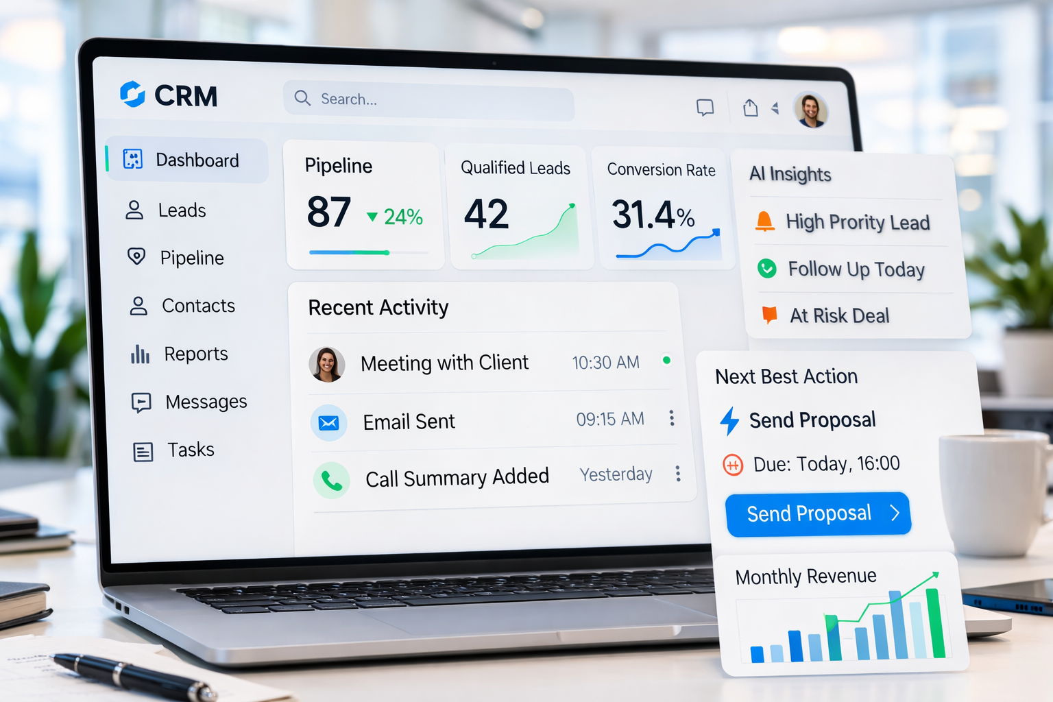 סיכומי שיחה, עדכון שדות CRM, טיוטות מייל, הצעות מחיר בסיסיות. ככל שמורידים זמן “לא-מכירה”, נשאר יותר זמן לשיחות איכות.